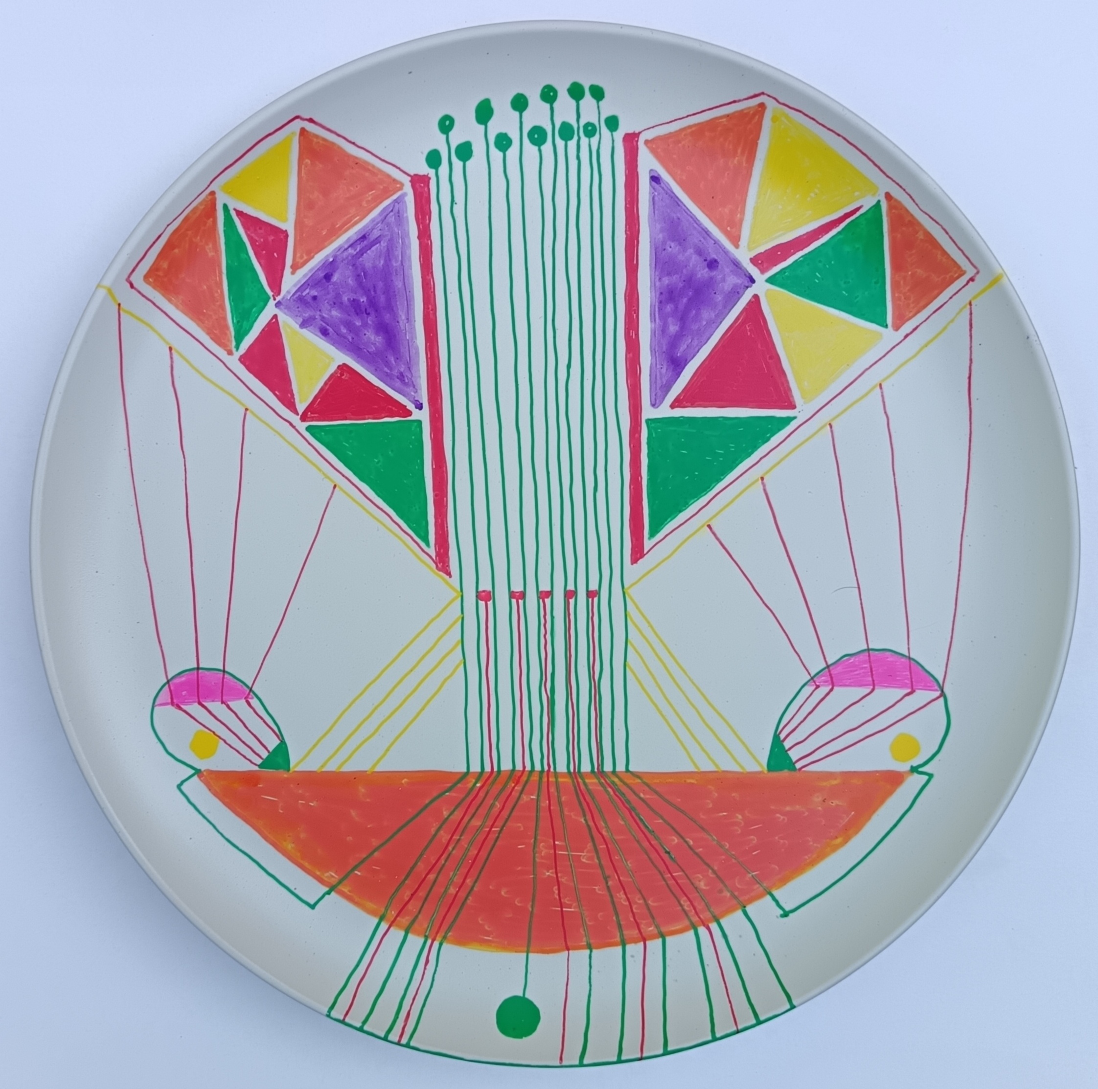 Plato de uso decorativo pintado a mano, diseño único, diámetro 26,5 cms.