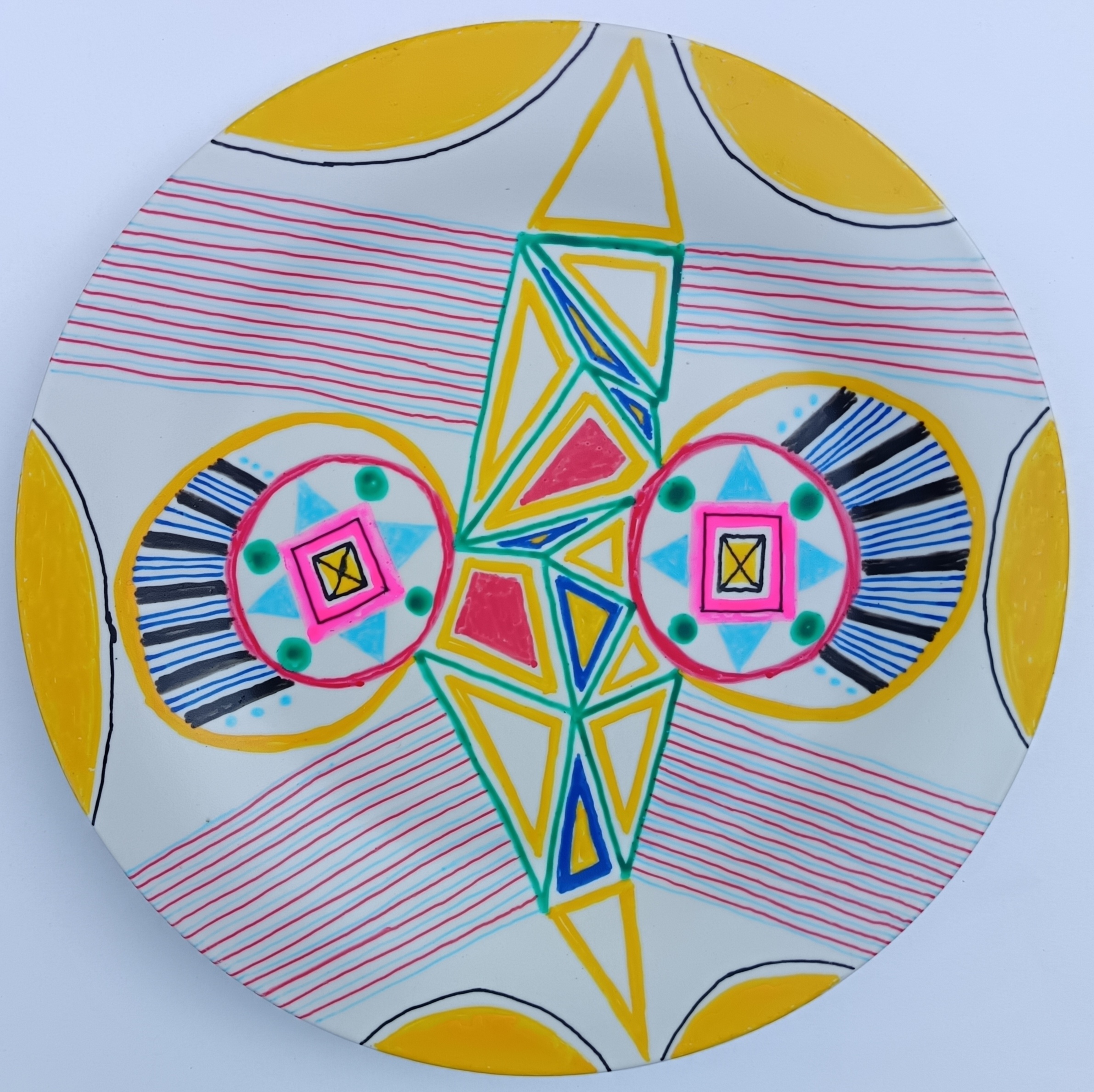 Plato decorado a mano, diseño único, diámetro 26 cms.