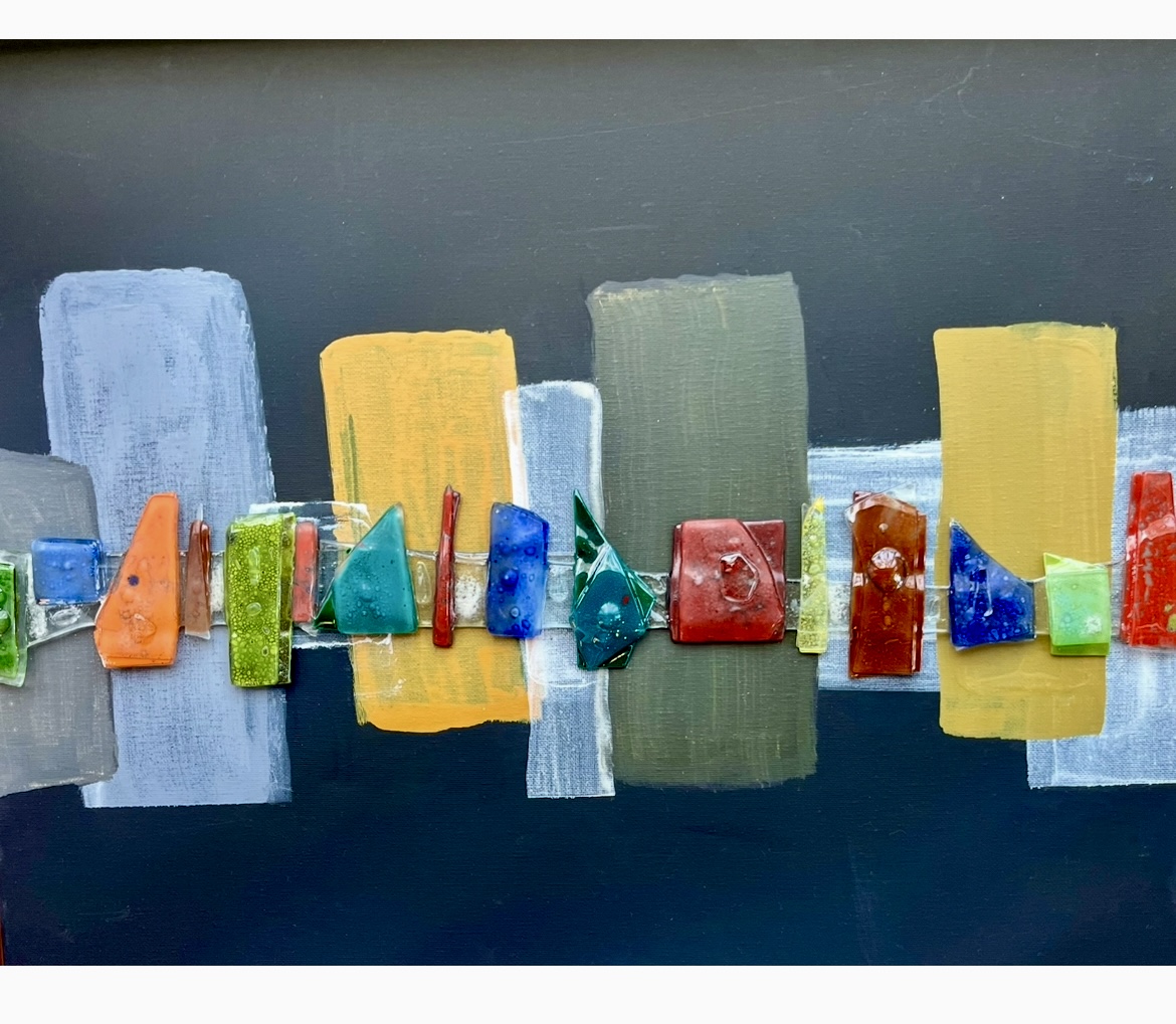 Técnica: Técnica Mixta con pintura acrílica y vidrio creado por la artista.